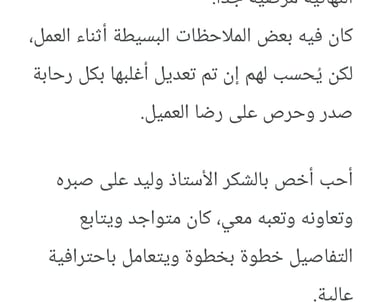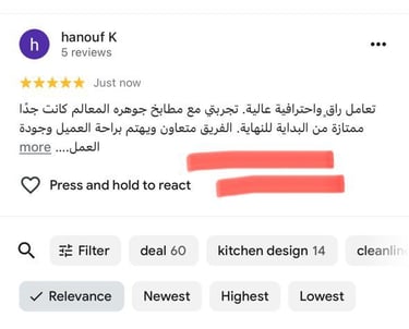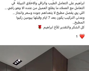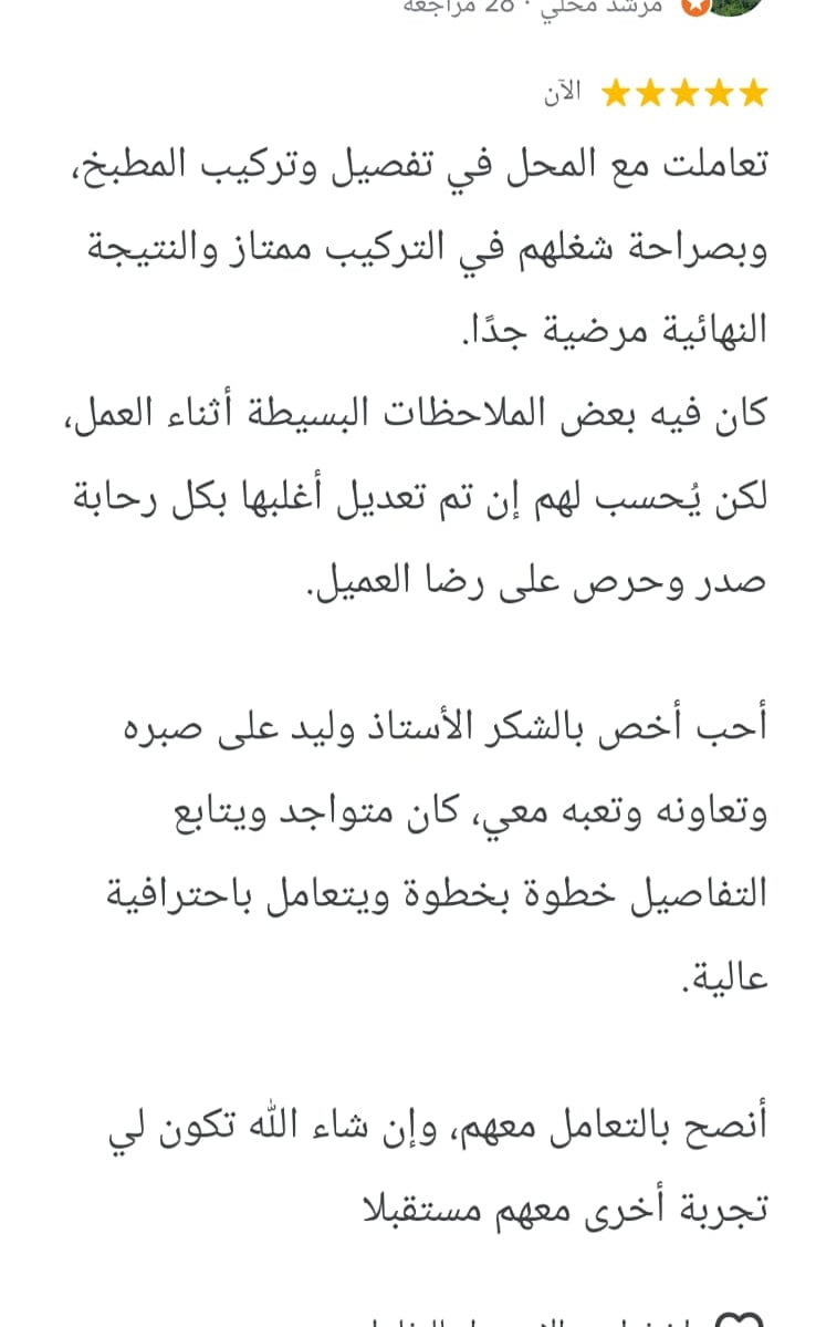 تصميم المطبخ كان رائعًا، التنفيذ كان دقيقًا والنتيجة فاقت توقعاتي. شكراً لفريق جوهرة المعالم.